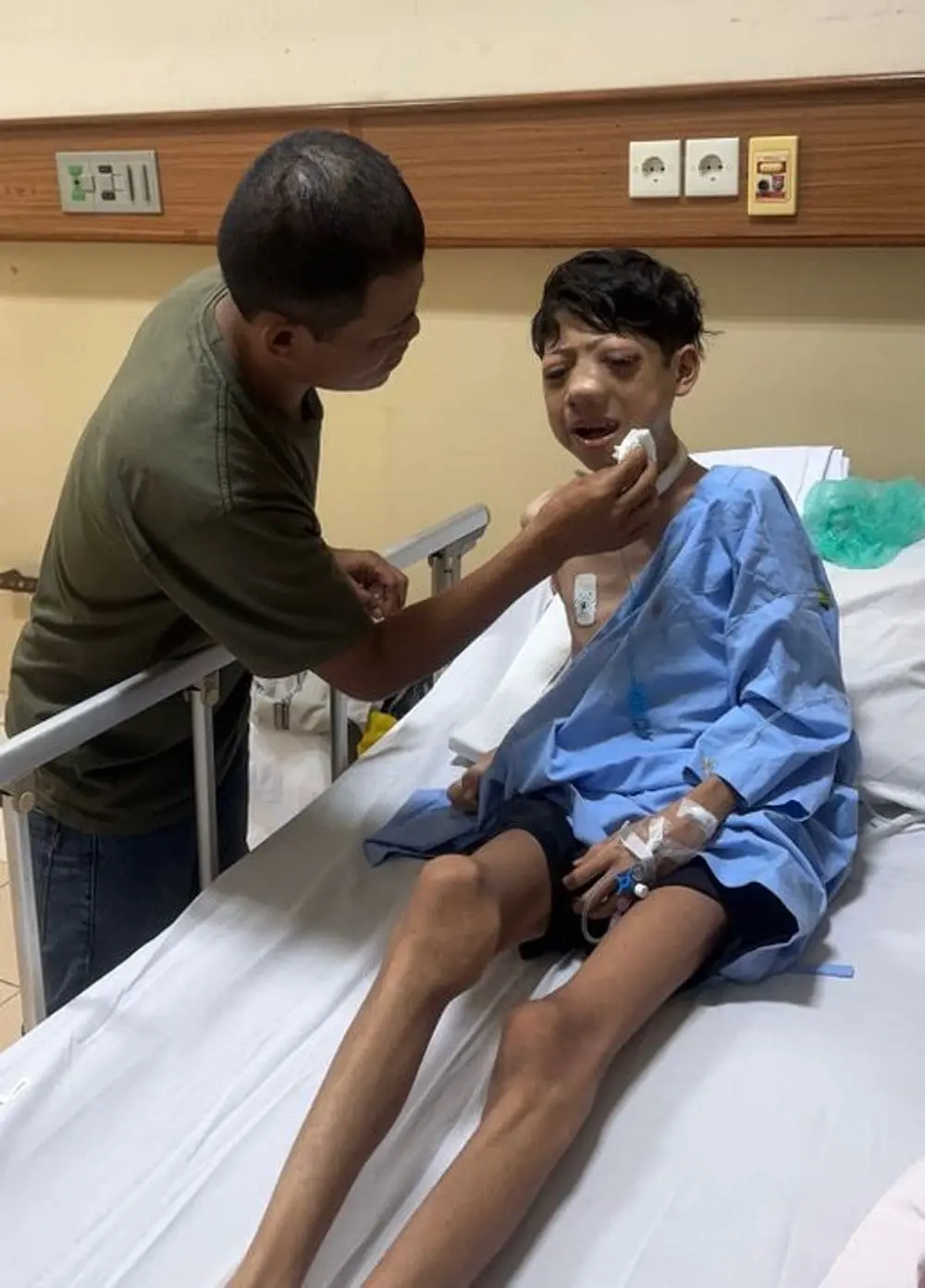 Pak Edi tetap setia mendampingi Erpan setiap hari. Menemani di ruang perawatan, menguatkan saat rasa sakit datang, dan terus berusaha tegar di tengah keterbatasan.